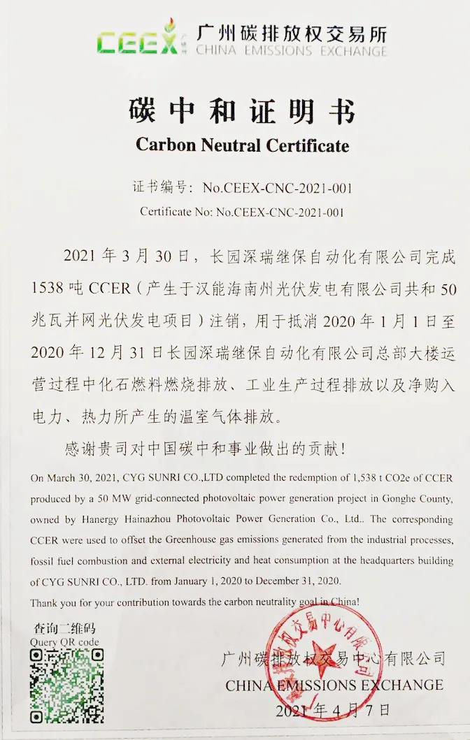 2021年初,为遵循疫情防控、响应“3060碳达峰碳中和”号召,东升国际官网深瑞采用线上形式开展产品鉴定会,同时按照《大型活动碳中和实施指南(试行)》的相关要求,通过购买顺昌县“一元碳汇项目”的碳汇减排量,对该次鉴定会的二氧化碳排放量进行碳中和。今后,我们将继续积极中和各类展会、会议等大型活动,践行“零碳会议”理念。